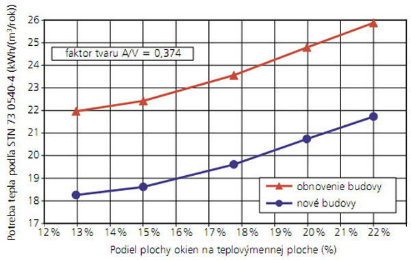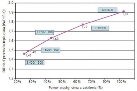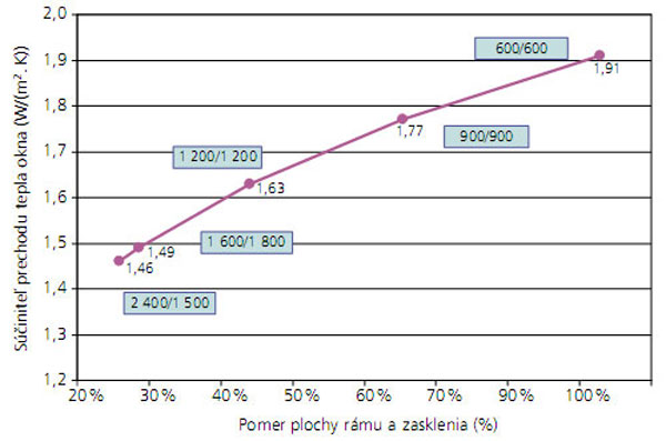 Požiadavky na minimálne tepelnoizolačné vlastnosti otvorových konštrukcií určuje STN 73 0540-2: 2002 pre obnovované a nové budovy maximálnou hodnotou UN vo W/(m2 . K). Požiadavky pre obnovované budovy sa stanovili podľa možností zmeny tepelnotechnickej kvality v čase prípravy normy (rok 2000 až 2002). V súčasnosti sa pre obnovované budovy uplatňuje aj prísnejšia požiadavka, ktorá sa odporúča pre nové budovy. Hodnota súčiniteľa prechodu tepla otvorovej konštrukcie Uw je závislá od pomeru plochy rámu a zasklenia (obr. 1).