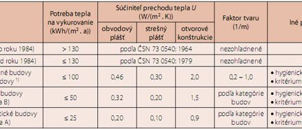 Minimálne požiadavky na energetické kritérium rozlíšené pre obnovované a nové budovy určuje so zohľadnením faktora tvaru budovy STN 73 0540-2: 2002.