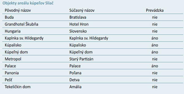 Patrí medzi ne aj areál kúpeľov Sliač. V súčasnosti je funkčná len jeho novšia časť. Historické budovy, v ktorých sa liečili významné osobnosti, sú mimo prevádzky a postupne začínajú chátrať. Tým sa, samozrejme, znižuje aj ubytovacia kapacita a menej pacientov má možnosť navštíviť tieto unikátne pramene.Kúpele Sliač sa nachádzajú na strednom Slovensku medzi Zvolenom a Banskou Bystricou. Jedinečné minerálne pramene s prirodzenou izotermickou teplotou a s vysokým obsahom oxidu uhličitého sa nachádzajú len na štyroch miestach na svete. Iba jeden je v strednej Európe, práve v Sliači. Termálne a minerálne vody už stáročia navracajú zdravie mnohým generáciám. V Kúpeľnom dome sú viaceré oddelenia, ktoré spolu vytvárajú polikliniku. Poskytujú sa tu procedúry modernej balneoterapie, doplnenej o nové formy a spôsoby liečby. Kúpele Sliač vracajú zdravie pacientom s chorobami srdca a ciev.