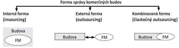 Zabezpečenie správy komerčných budov prostredníctvom facility managementu možno vykonávať viacerými formami: