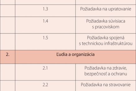 - požiadavky spojené s pracovníkmi a organizáciou (pozri tab. 1).