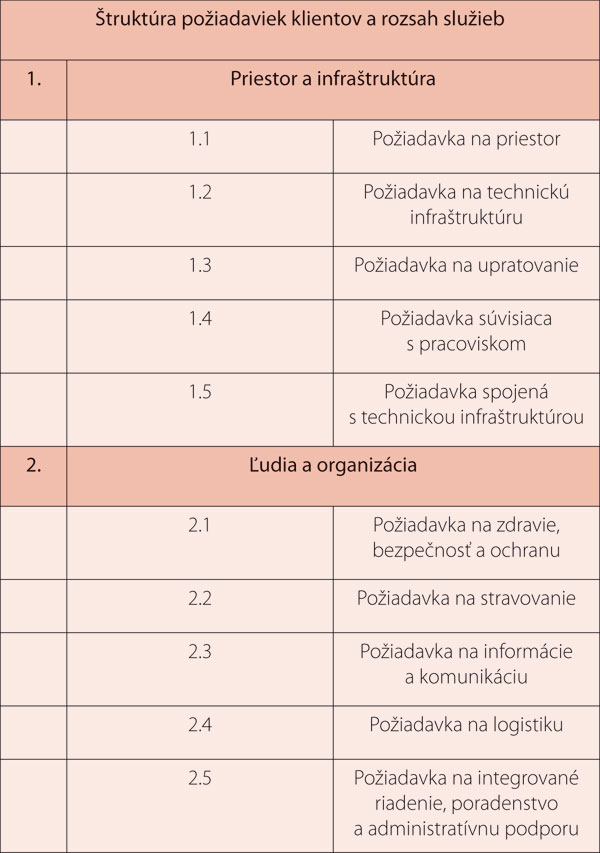 „Požiadavky klienta na priestor sa uspokojujú službami ako napríklad plánovanie, návrh a akvizícia priestorov, ale tiež ich správa“.