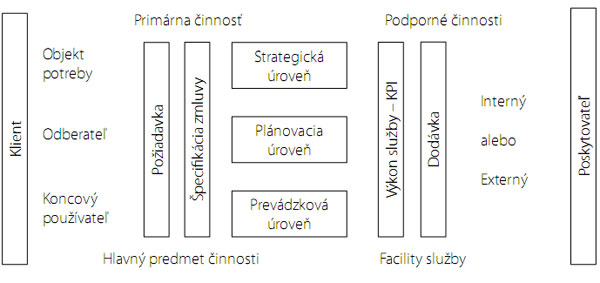 Za ostatných 10 rokov u nás narástol záujem o možnosti uplatnenia metódy FM pri riadení podporných činností, čo súvisí s celým, radom faktorov [1]. Ide najmä o optimalizáciu prevádzkových nákladov vyčleňovaním podporných činností, ktoré sa následne nakupujú od externého dodávateľa (poskytovateľa) ako jednotlivé alebo integrované FM služby. Definícia metódy riadenia podporných činností podľa normy ČSN EN 15 221-1 [2] (STN EN 15 221 Facility management) predstavuje „integráciu činností v rámci organizácie na zabezpečenie a rozvoj dohodnutých služieb, ktoré podporujú a zvyšujú efektivitu vlastných základných činností“. Proces zoštíhľovania hodnotového reťazca podniku získava na význame vzhľadom na problematiku outsourcingu, ktorá sa dá vnímať ako získavanie zdrojov z vonkajška (obr. 1).