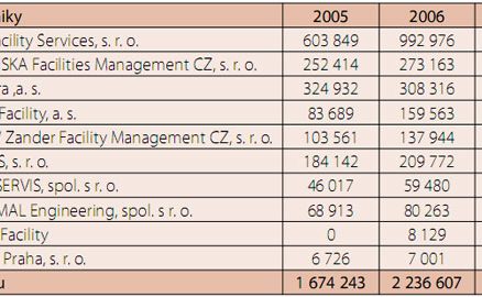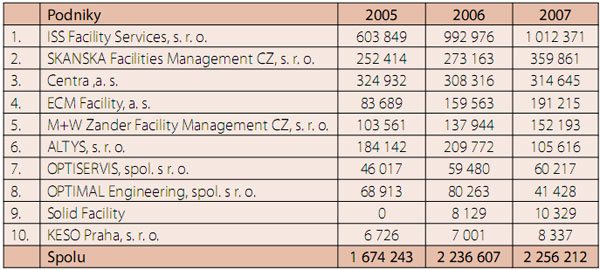 FM ako efektívna metóda správy nehnuteľnosti nachádza v našich podmienkach čoraz väčšie uplatnenie, dochádza k efektívnejšiemu riadeniu základného predmetu podnikania s cieľom zvýšiť konkurencieschopnosť. Na českom trhu FM s odhadovaným objemom 100 miliónov eur sa ukazuje, že význam FM stále stúpa a zároveň narastá tlak na znižovanie a optimalizáciu nákladov spojených so správou a prevádzkou hnuteľného a nehnuteľného majetku v rôznych segmentoch trhu. Vybrané podniky FM v Českej republike viac-menej kopírujú európsky vývoj (tab. 1).
