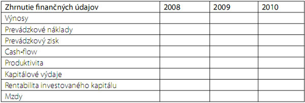 - KPI (presná špecifikácia úrovne výkonu a kvality),