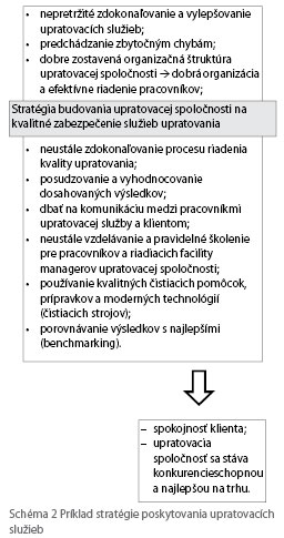 Na to, aby upratovacie spoločnosti boli na trhu úspešnejšie, potrebujú vytvárať a neustále budovať stratégiu na kvalitné zabezpečenie služieb s cieľom čo najlepšie uspokojiť klienta. Príklad budovania stratégie je znázornený schémou 2.