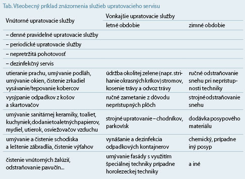 Rozsah poskytovaných služieb uvedených v tabuľke však nepostačuje napríklad v nemocnici. V nemocniciach sa musia vykonávať špeciálne upratovacie služby zamerané na dezinfekciu, ktoré vymedzuje platná legislatíva.
