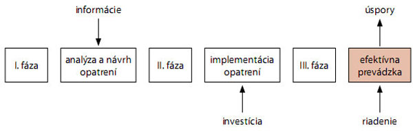 Z aspektu energetickej efektívnosti budovy je významnou súčasťou facility managementu manažment energetickej efektívnosti (obr. 1). Postupnosť manažmentu energetickej efektívnosti tvoria tri fázy: