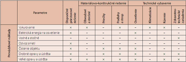 Technické parametre stavby, ktoré ovplyvňujú výšku prevádzkových nákladov, sú: