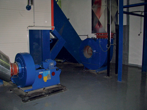 | Vzduchové ventilátory slúžia na zabezpečenie požadovaného množstva spaľovacieho vzduchu | Multicyklón na predodprašenie spalín |