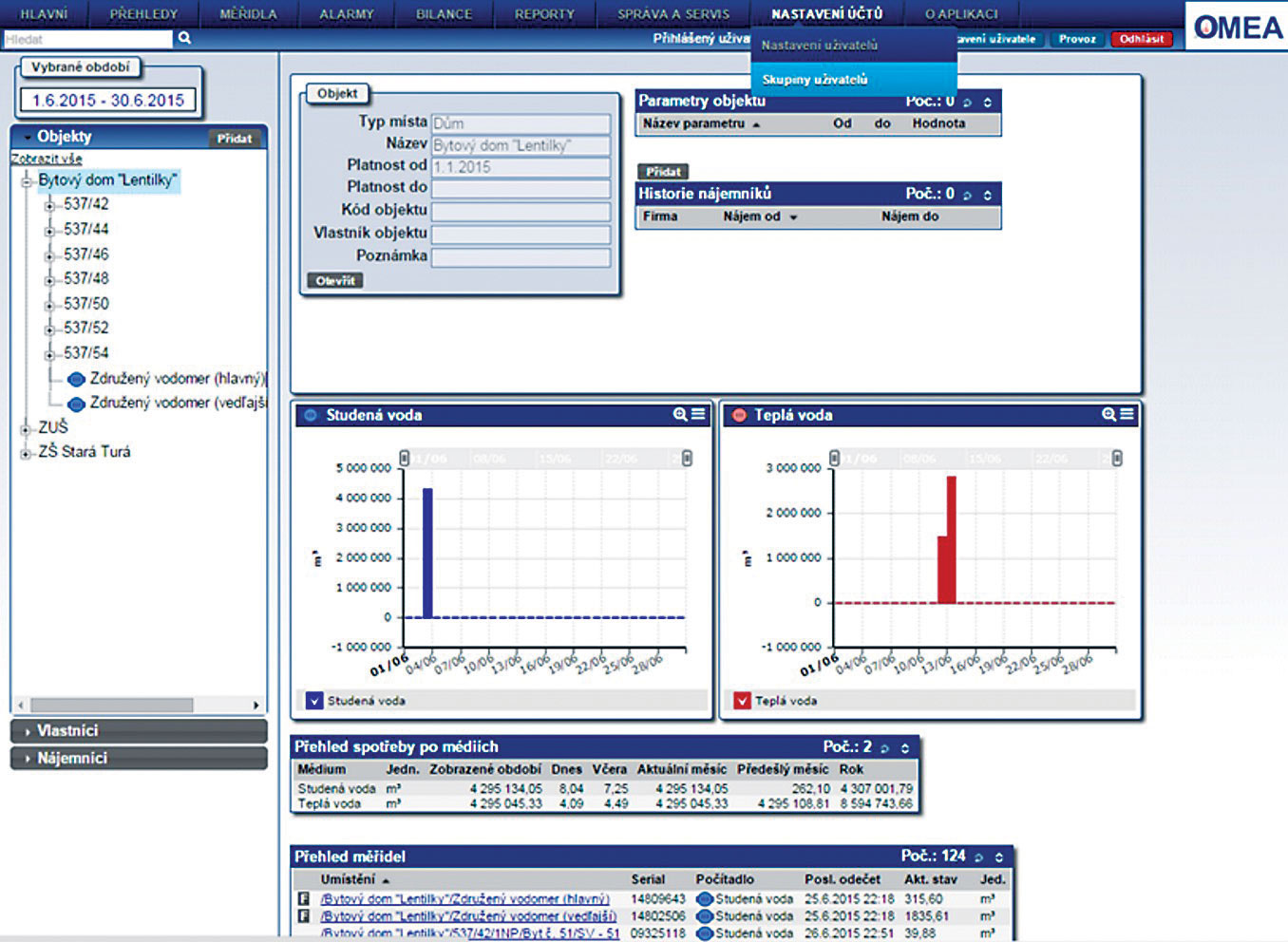 Správca budovy, bytového domu alebo poverení členovia výboru majú priamo v systéme trvale k dispozícii prehľady o spotrebe vody a tepla, o aktuálnych nákladoch celej budovy. Okrem toho im systém automaticky každý mesiac zasiela prostredníctvom elektronickej pošty tzv. mesačný report so základnými údajmi o vývoji spotreby a nákladoch. Užívatelia bytov (nájomcovia budov) majú k dátam trvalý prístup a každý mesiac dostávajú do svojej mailovej schránky „výkaz spotreby bytu/objektu“. Systém automaticky každý mesiac zasiela správcovi alebo inej poverenej osobe výkaz bytu/budovy s nulovou spotrebou vody za predchádzajúci mesiac. Výkaz bytu môže slúžiť ako podklad na porovnanie so skutočným stavom užívaných bytov (na overenie, či sú všetky byty s nulovou spotrebou skutočne neobývané).