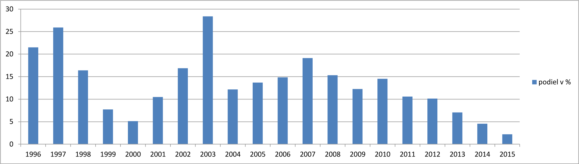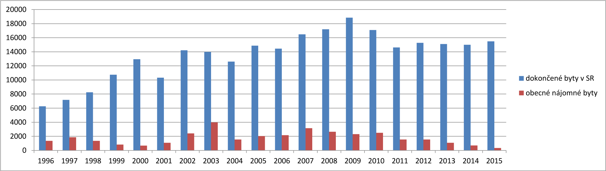 Faktom však zostáva, že na celkovom počte bytov sa rozhodujúcou mierou podieľa súkromný sektor. Alarmujúcou skutočnosťou je neustále sa znižujúci počet dokončených, ale aj začatých obecných nájomných bytov (obr. 4). Ako vyplýva z Informácie MDVRR SR o bytovej výstavbe v Slovenskej republike za rok 2015, mestá a obce majú zvýšený záujem zabezpečovať byty pre svojich obyvateľov nie formou výstavby, ale skôr obstarávaním dokončených bytov prostredníctvom kúpy od zhotoviteľov.
