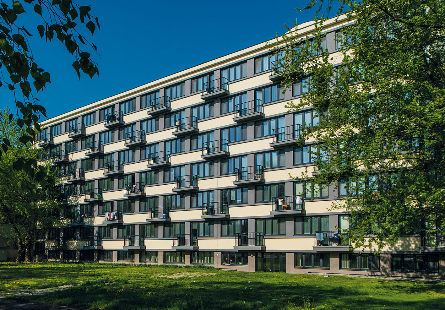 Obnova sa realizovala v úzkej spolupráci zástupcov obyvateľov s projektantom, realizačnou firmou a dodávateľom materiálového riešenia. Výsledok plne rešpektuje pôvodné architektonické riešenie domu, ktorý bol postavený v rokoch 1958 až 1961 ako súčasť bratislavského sídliska Februárka s jedinečným, dodnes oceňovaným urbanistickým konceptom. Zateplenie kontaktným tepelnoizolačným systémom Baumit s precíznou realizáciou všetkých náročných typických detailov fasády, s použitím samočistiacej omietky s farebnosťou rešpektujúcou pôvodné riešenie môže byť príkladom, ako realizovať obnovu s rešpektom k pôvodnej architektúre a zároveň využívať najprogresívnejšie stavebné materiály.