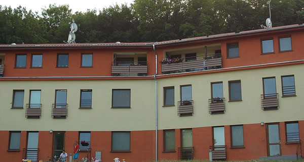 Aj tento objekt v Pezinku má teraz nové využitie. Pôvodná stará kancelárska budova sa zmenila na bytový dom. Objekt bol doplnený balkónovými doskami s oceľovou nosnou konštrukciou.