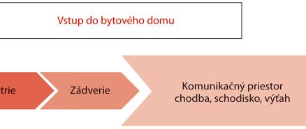 Prechod zo zádveria do komunikačného priestoru má rozličné možnosti: cez predsieň, chodbu, schodisko alebo výťah až k jednotlivým bytom. V týchto priestoroch je potrebné: