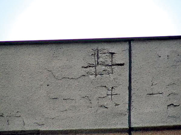 | Obr. 6 Príklad odhaľovania výstuže v dôsledku nedostatočnej krycej vrstvy a jej následná korózia | Obr. 7 Príklad poškodenia styku obvodových nosných konštrukcií štítových panelov |