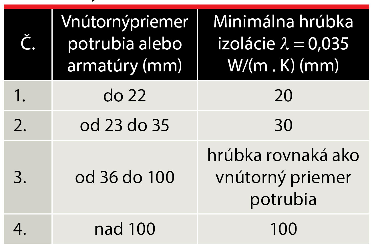Pri nižšej zástavbe vyhovuje potrubie PE-X, pričom univerzálne materiály predstavujú viacvrstvové rúry, medené rúry a rúry z nehrdzavejúcej ocele. Na prepojenie zvislých a bytových rozvodov možno použiť tzv. vlnovcové potrubie z nehrdzavejúcej ocele (použitie pružných hadíc je zakázané). Príklad použitia týchto rúr je na obr. 1. Za uzatváracie armatúry je najvýhodnejšie použiť výrobky z červeného bronzu, a to aj tam, kde sa pri lisovacích spojoch ponúkajú armatúry z nehrdzavejúcej ocele. Bez ohľadu na materiál musí byť stúpacie aj ležaté potrubie tepelne izolované podľa vyhlášky MH SR č. 282/2012 Z. z. Údaje o hrúbkach tepelných izolácií potrubia sú v tab. 1 a tab. 2. Pri prechodoch vodovodného potrubia cez stropy sa odporúča použiť protipožiarne manžety (u nás nie sú normatívne predpísané).