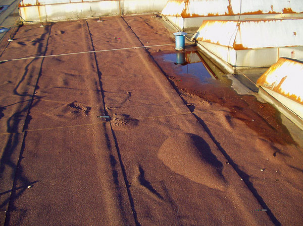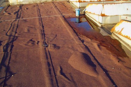 | Stierková izolácia – poškodenie zmrašťovaním | Neodborná sanácia strechy s asfaltovým pásom bez odstránenia vlhkosti |