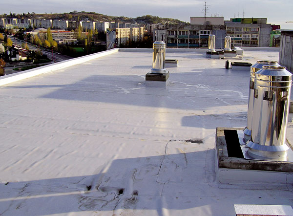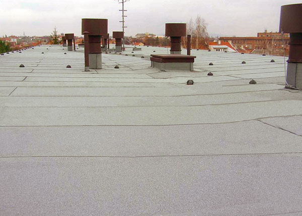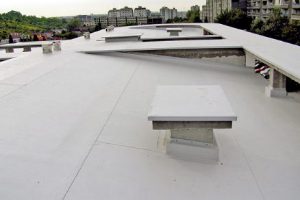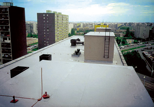 | Strecha bytového domu po rekonštrukcii SBS modifikovanými asfaltovými pásmi | Strecha bytového domu po rekonštrukcii s olefínovou fóliou |