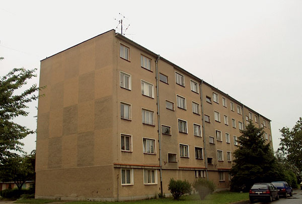Štítová stena. Dom má dva typy štítových stien: obvodové a vnútorné steny pri dilatáciách. Vonkajšia obvodová stena 1. nadzemného podlažia bola navrhnutá z tehlového muriva s hrúbkou 375 mm. V 2. a ďalších podlažiach má stena z pórobetónových tvárnic hrúbku 240 mm.