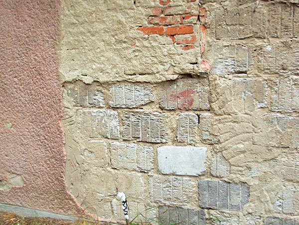 Na sokli sa kompletne odstránila omietka. Poškodený betón sokla sa očistil a opravil. Na zatuhnutý povrch sa naniesla nová omietka podľa technologického postupu pre nanášaný druh omietky.