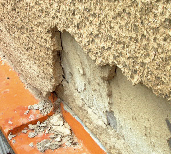 Prieskum potvrdil, že obvodový plášť je porušený. Má charakter systémovej poruchy. Vo vonkajších omietkach sú trhliny. Časť omietok bola uvoľnená a ďalšia časť omietok odpadla. Na vonkajšom obvodovom plášti sa v priebehu užívania nevykonala žiadna údržba s výnimkou náterov šambrán okolo okien. Na jednom mieste sa doplnila odpadnutá omietka.