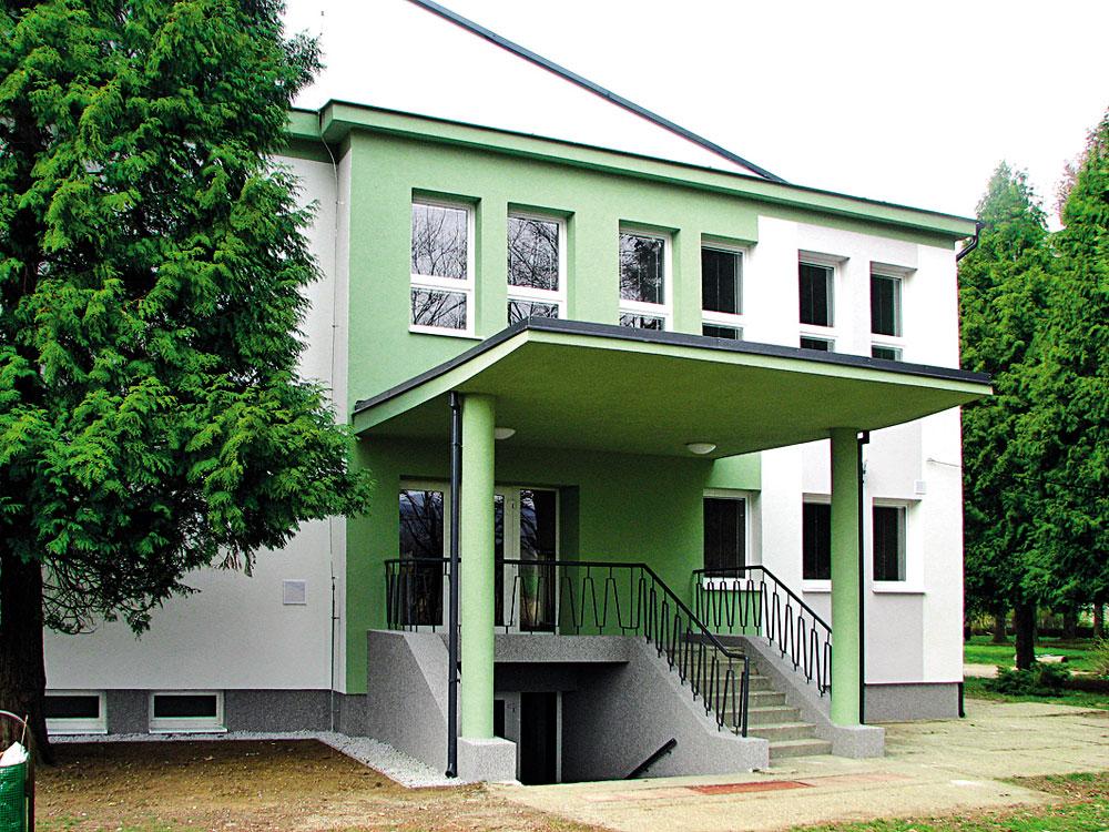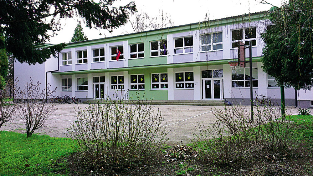 Samostatne stojaca budova poskytuje priestory materskej a základnej škole. Postavená je na rovinatom teréne s miernym sklonom, sčasti je podpivničená. Z prekrytej sedlovej strechy v niektorých častiach prečnievajú výbežky plochej strechy. Suterén slúži ako šatne a skladovacie priestory. Betónové obvodové múry suterénu sú sčasti nad terénom. Obvodové múry prízemia sú z plných pálených tehál a pórobetónových tvárnic. Nosnú konštrukciu strechy tvoria prefabrikované sedlové betónové väzníky a betónové väznice. Budova má tri vstupy, hlavný do vstupnej haly, vedľajší vstup na 1. poschodí a vedľajší vstup do suterénu. V budove sú dve železobetónové schodiská vedúce na 1. poschodie a dve vedúce do suterénu. Všetky vychádzajú zo vstupnej haly. Zdvojené okná s dreveným rámom a s jednoduchým zasklením boli opotrebované. Hlavné vstupné dvere, ktoré sa nachádzajú na severozápadnej strane, boli z oceľových profilov.Obnova budovy zahŕňala zateplenie strechy a obvodového plášťa, výmenu okien a dverí, výmenu svietidiel a svetelných zdrojov a inštalovanie termostatických hlavíc na vykurovacie telesá. Na zateplenie obvodového plášťa sa použila tepelná izoláciá na báze polystyrénu s hrúbkou 80 mm. Pôvodné zdvojené okná s dreveným rámom nahradili päťkomorové plastové okná s izolačným dvojsklom. Celkovo sa vymenilo 92 okien a štvoro dverí. Súčasťou obnovy bola aj výmena 133 svietidiel a 284 svetelných zdrojov. Pôvodné väčšinou 60 W žiarovky sa vymenili za nové žiarivkové, zväčša 28 W. V budove sa inštalovalo 67 termoregulačných hlavíc na pôvodné vykurovacie telesá. Vykurovanie budovy je zabezpečené prostredníctvom štyroch plynových kotlov, ktoré nebolo nutné meniť, pretože boli vo vyhovujúcom technickom stave.