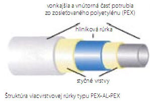 - rúrky majú nosnú hliníkovú rúrku vybavenú z vonkajšej aj vnútornej strany vrstvou zo zosieťovaného polyetylénu (PEX),
