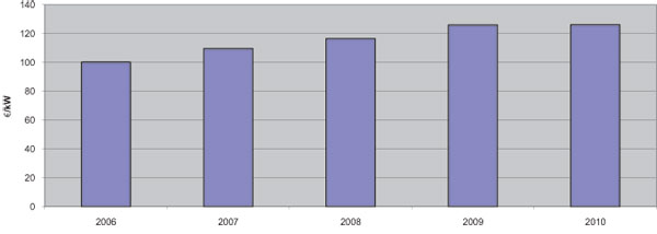 Fixná zložka ceny tepla sa určuje na regulačný príkon a vyjadruje sa v €/kW. Regulačný príkon sa vypočítal pre rok 2009 zo skutočnej priemernej spotreby tepla v rokoch 2005 až 2007 a priemerného počtu 5 300 hodín vo vykurovacom období. Takto určený regulačný príkon platí počas celého regulačného obdobia. Výnos č. 6/2008 v znení neskorších predpisov reaguje aj na následky hospodárskej krízy, dôsledkom ktorej sa znižujú priemyselné odbery, čo podstatne ovplyvňuje ekonomickú situáciu dodávateľov. V týchto kritických prípadoch výnos pripúšťa zníženie regulačného príkonu, a tým zvýšenie fixnej zložky ceny tepla pre ostatných odberateľov tak, aby nedošlo k likvidácii samotného dodávateľa.