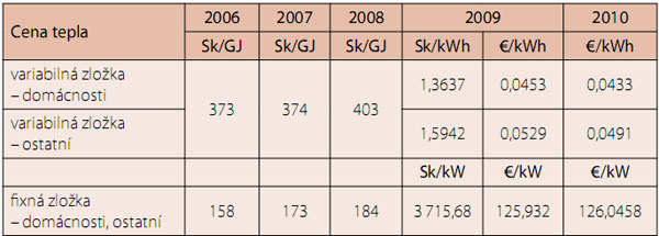 Variabilná zložka ceny tepla sa určuje v €/kWh objednaného množstva tepla, pričom sa osobitne určuje pre domácnosti a osobitne pre ostatných odberateľov. Tento postup vyplynul z regulácie ceny plynu na výrobu tepla pre domácnosti a z aplikácie zákona č. 609/2007 Z. z. o spotrebnej dani z elektriny, uhlia a zemného plynu a o zmene a doplnení zákona č. 98/2004 Z. z. o spotrebnej dani z minerálneho oleja v znení neskorších predpisov.