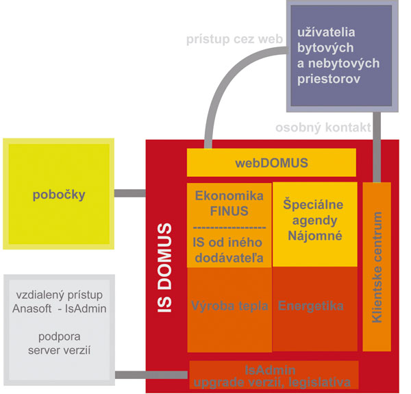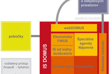 Nosným produktom je informačný systém Domus, ktorého siedmu verziu uvied­la spoločnosť koncom minulého roka. Tento modulárny systém pokrýva všetky činnosti správcu bytových a nebytových priestorov – od ekonomickej agendy (účtovníctvo, faktúry, mzdy atď.), cez špeciálne agendy (platby, koncoročné vyúčtovanie, údržbu bytového fondu, klientske centrum atď.) a energetiku (merače, výroba tepla) až po správu systému a WebDomus­, čiže prezentáciu cez web stránku.