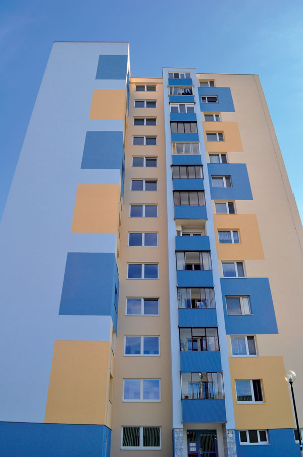 Ide o profesionálnu prestíž. Dorábať po niekom rozrobenú prácu je veľké riziko, lebo nevieme, ako kvalitne boli vykonané hotové práce. Aplikácia tepelnoizolačného systému má určité postupy, a pokiaľ nie je dobre urobený základ, čiže príprava podkladu, nalepenie, ukotvenie izolantu a hlavne potrebná rovinnosť, nemôžete predsa za niekoho prevziať celkovú zodpovednosť. Prevzali sme aj nedokončenú stavbu, išlo však o pokračovanie. Keď investor pre nedostatok finančných prostriedkov stavbu prerušil, mal urobený štít. Po čase našetril peniaze a dal si urobiť zateplenie aj iných častí bytového domu. V tomto prípade sme pokračovali, lebo sme kompletne zatepľovali nové steny. Štít sme len farebne prispôsobili ostatným častiam domu. Za túto prácu nemáme problém prevziať záruku.