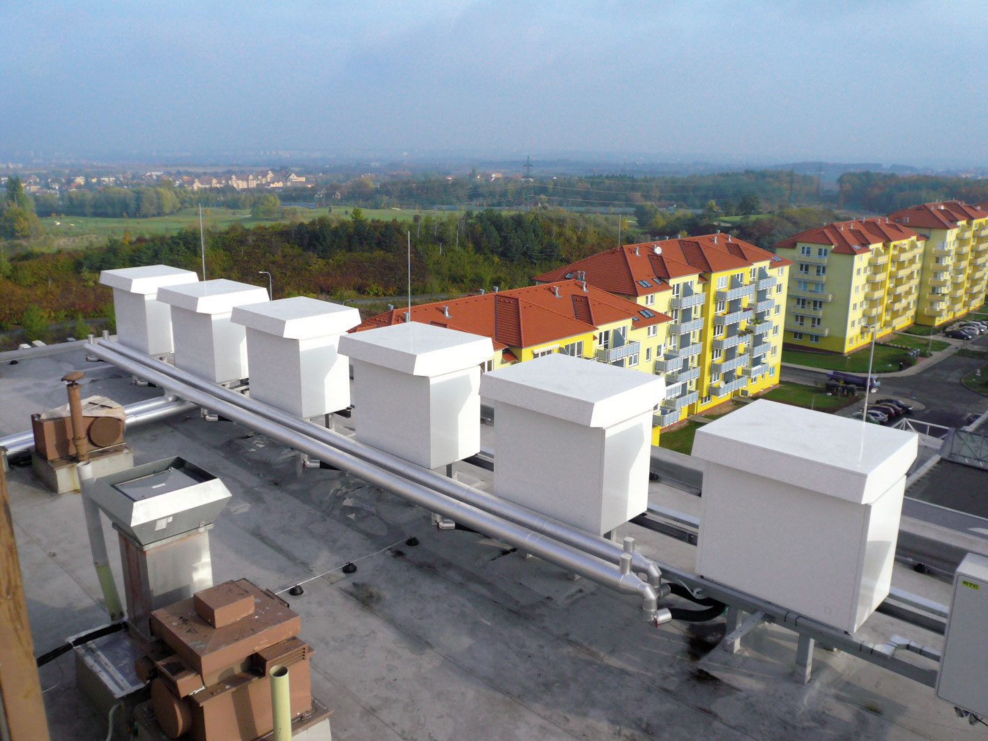Obr. 2  Elektronické tepelné čerpadlá vzduch-voda umiestnené na streche bytového domu (foto: Stiebel Eltron)
