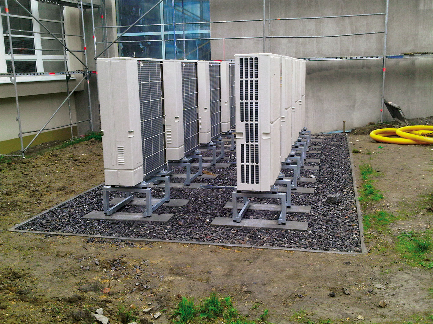 Obr. 3  Kaskáda elektrických tepelných čerpadiel vzduch-voda umiestnených v predzáhradke bytového domu (foto: Tepená čerpadla IVT, s. r. o.)