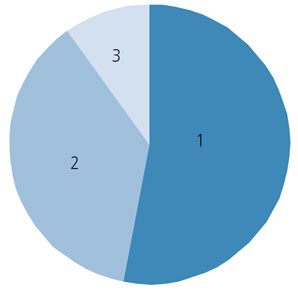 Očakávaná zmena investícií oproti pôvodne plánovanej úrovni na Slovensku 1 – pokles 53 %, 2 – bez zmeny 37 %, 3 – nárast 10 % Zdroj: Prieskum Podnikateľskej aliancie Slovenska, október 2008 |