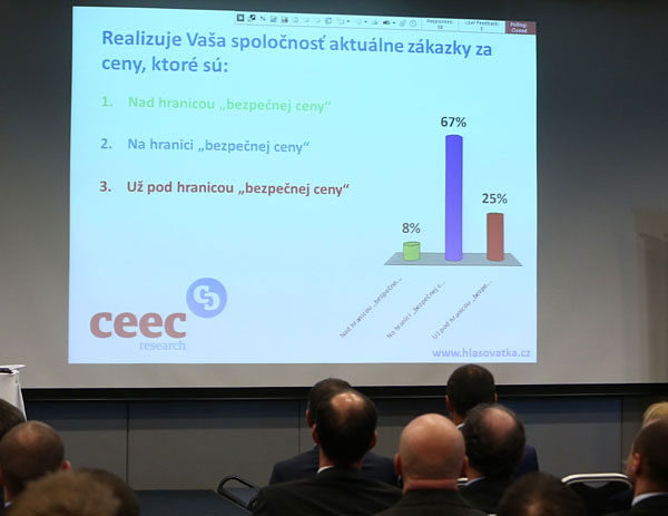 Situácia v oblasti stavebných spoločností a tržného prostredia je taktiež náročná. Ako ukazujú závery Stretnutia lídrov slovenského stavebníctva 2013/H2, ktoré sa konalo v Bratislave 2. decembra, až štvrtina firiem potvrdzuje (25%), že realizuje stavby pod hranicou bezpečnej ceny a 67% stavebných spoločností je pri svojich realizáciách na hranici bezpečnej ceny.