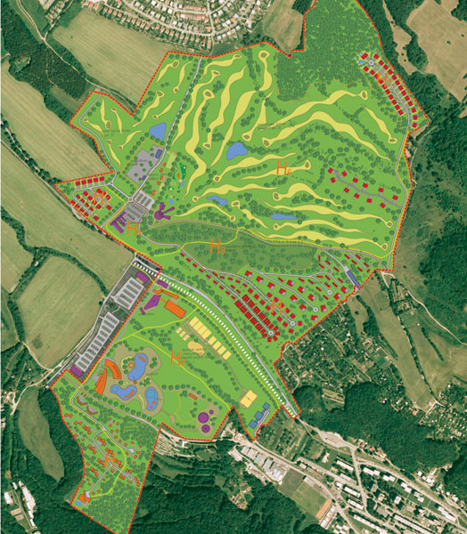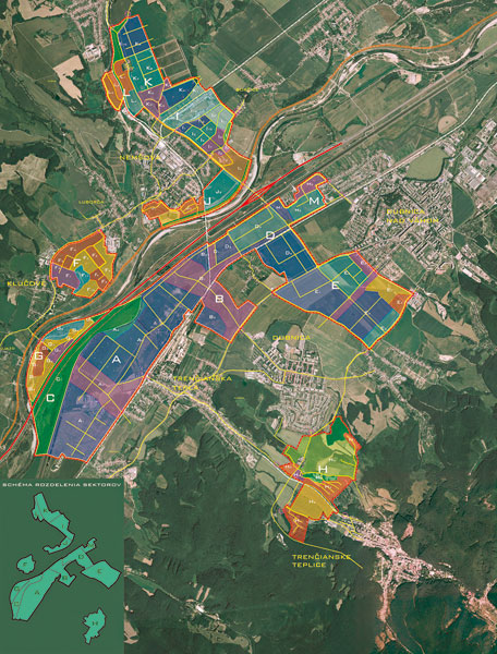 1 – rozvojová zóna Stanoviny, 2 – rozvojová zóna Amadeus, 3 – rozvojová zóna Stred, 4 – bytová vstavba – Červené kopanice, 5 – vnútorné kúpeľné územie