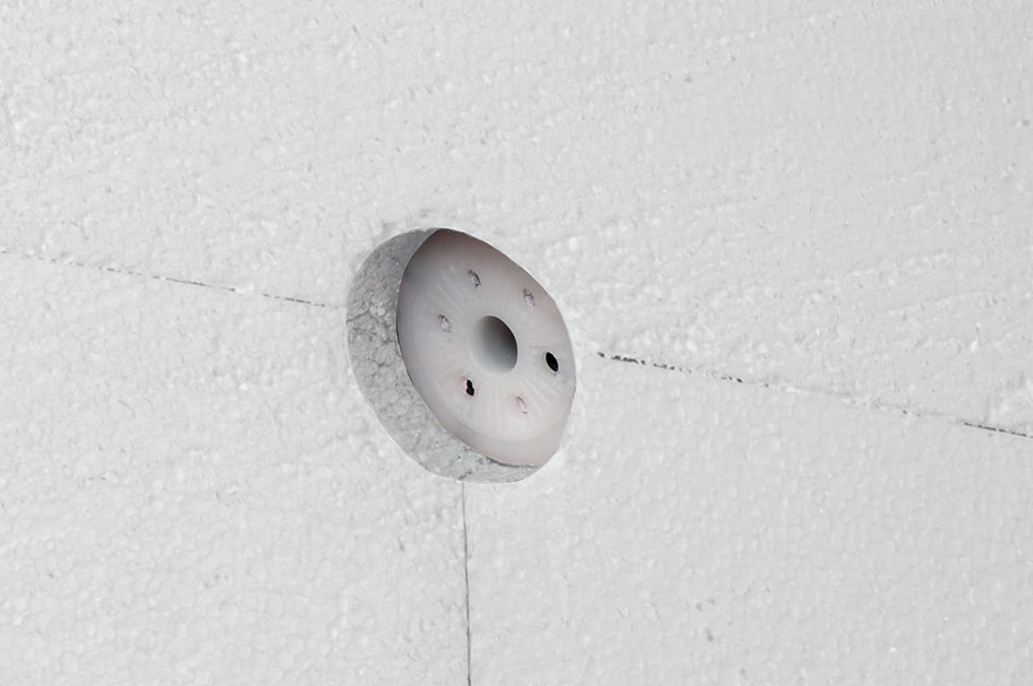 Po zatvrdnutí lepiacej malty sa izolačné dosky upevnia na podklad kotvami ETA. Počet a rozmiestnenie kotiev sa určí statickým výpočtom a uvedie sa v projektovej dokumentácii. V okrajových častiach fasády (na rohoch) je ich počet dvojnásobný. Priemer vrtáka je 8, resp. 10 mm, do poréznych materiálov sa vŕta bez príklepu.