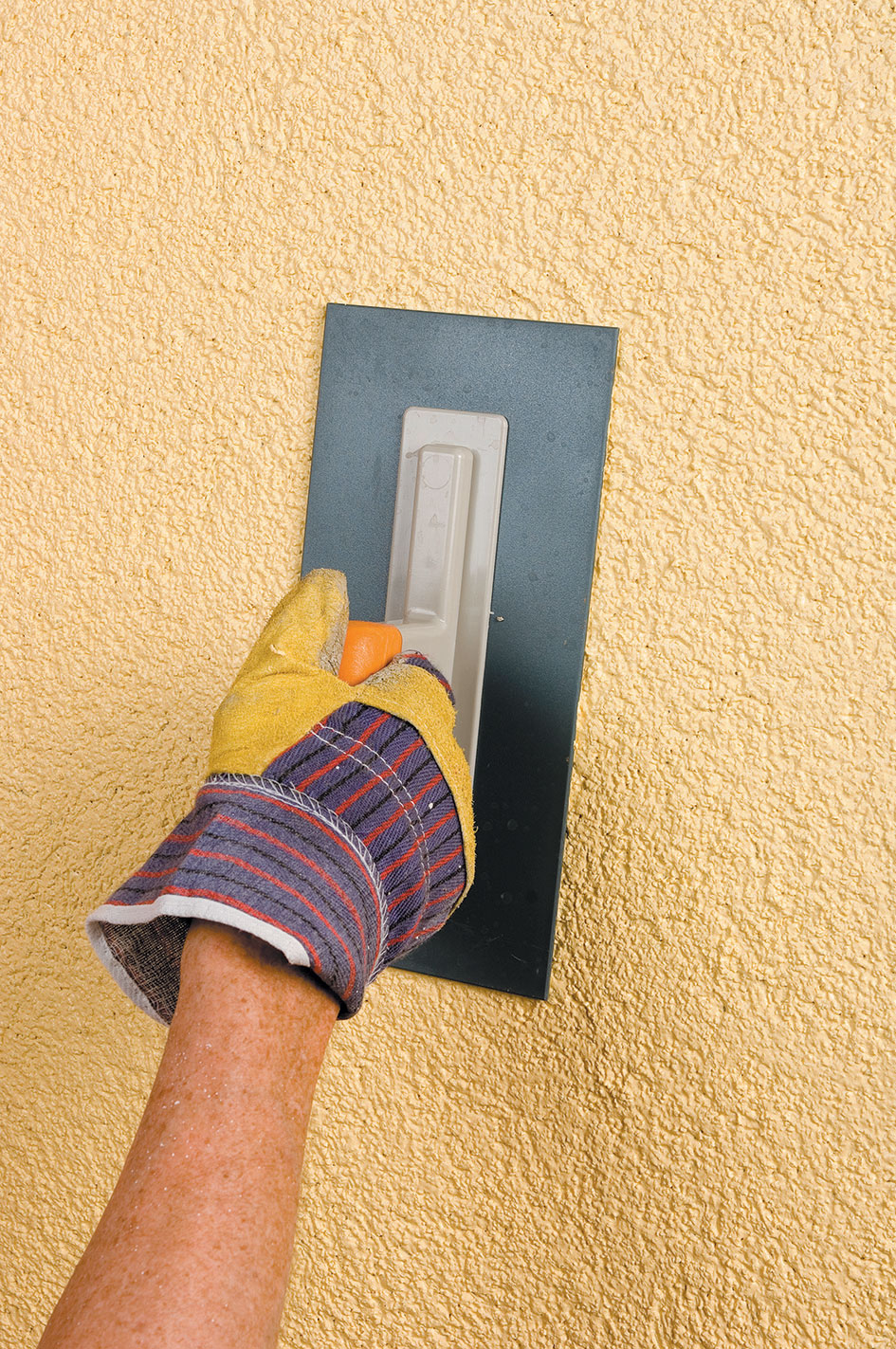- Náradie a pomôcky: ručné nízkootáčkové elektrické miešadlo, oceľové zubové hladidlo (veľkosť zuba 10 × 10 mm), oceľové hladidlo, plastové hladidlo, murárska lyžica, aplikačný valček, dvojmetrová oceľová lata, brúsna doska so skleným papierom