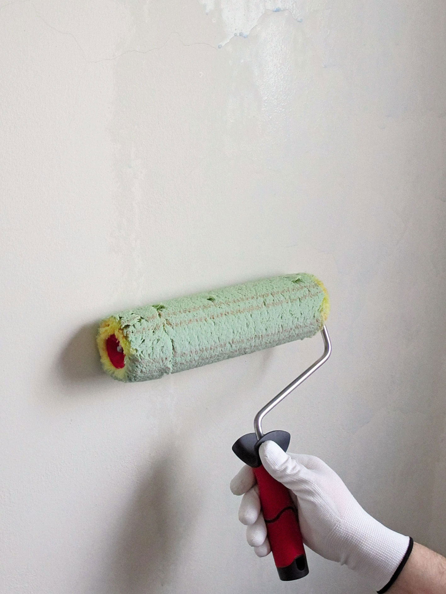 - Náradie a pomôcky: maliarska špachtľa, aplikačná pištoľ, brúsny papier, aplikačný valček, plastová nádoba, nádoba na vodu, drievko na miešanie, maliarsky štetec, jemný valček s kratším vlasom na dlhej rúčke