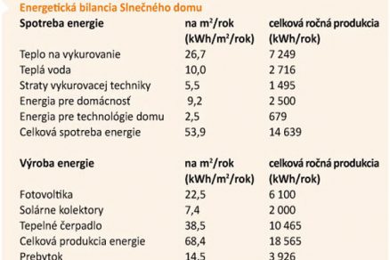 Energetická bilancia – prebytok 14,5 kWh/m2/rok zodpovedá 27 % celkovej spotrebe energie