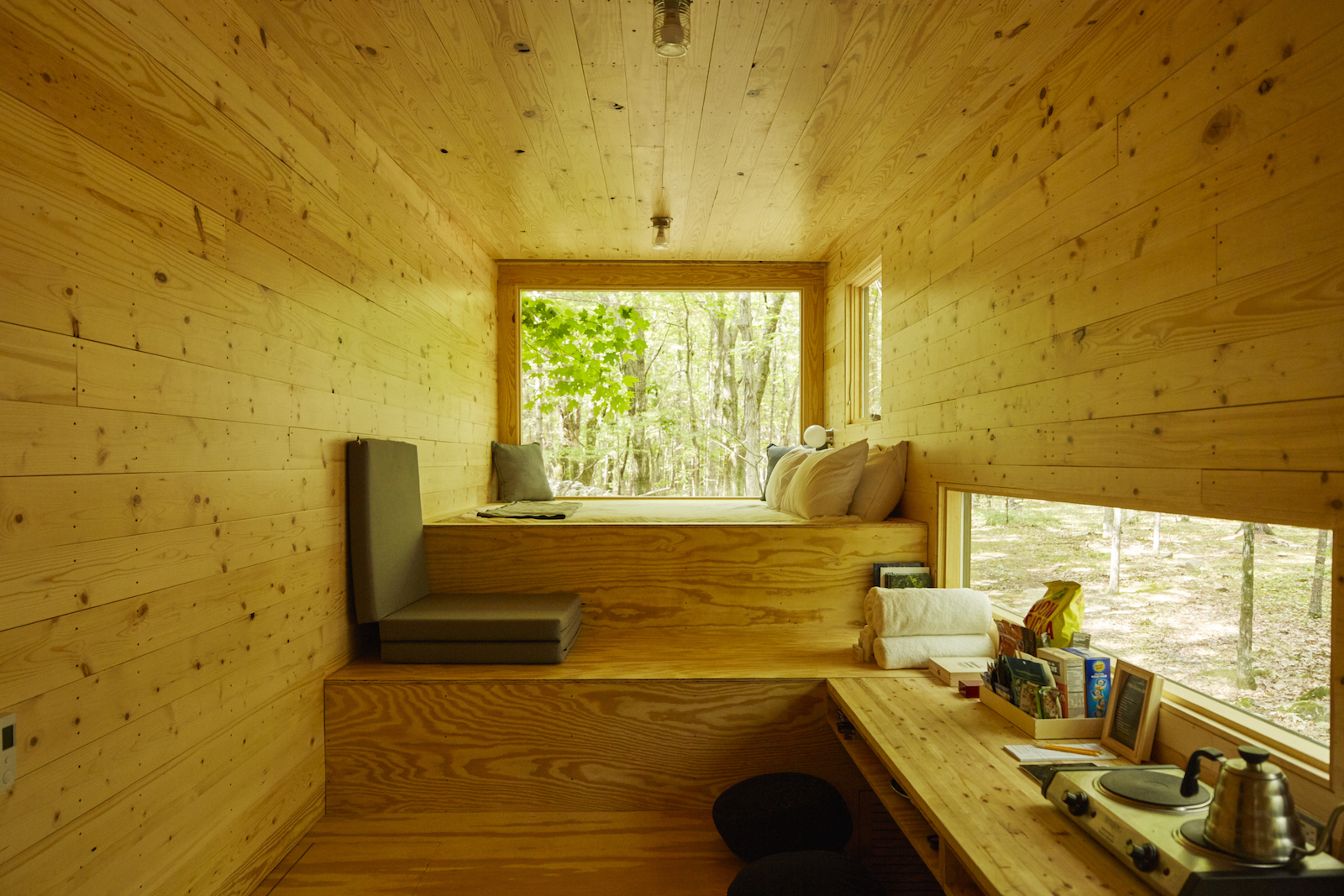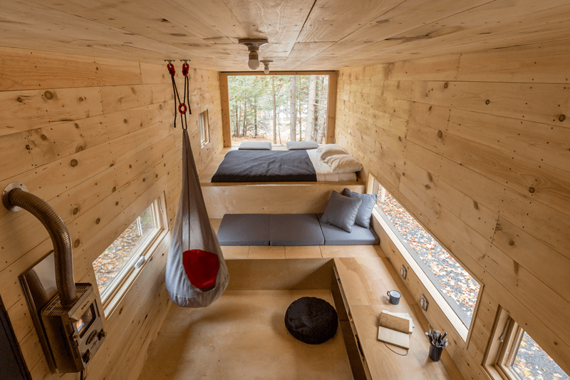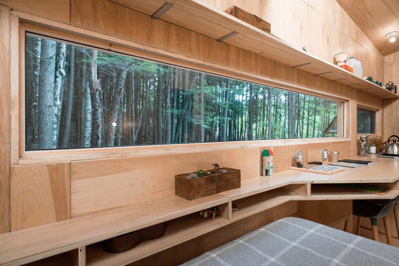 Napríklad chatka Ovida, ktorá stojí neďaleko Bostonu, evokuje tradičný drevený dom, má drevenú konštrukciu. Je „oblečená“ do čierneného dreva, v ktorom sú okná rôznych rozmerov. Interiér je vybavený manželskou posteľou, kútikom s poschodovou posteľou, jedálenským stolom, vstavanými policami. Je navrhnutá tak, aby maximalizovala dostupný priestor.