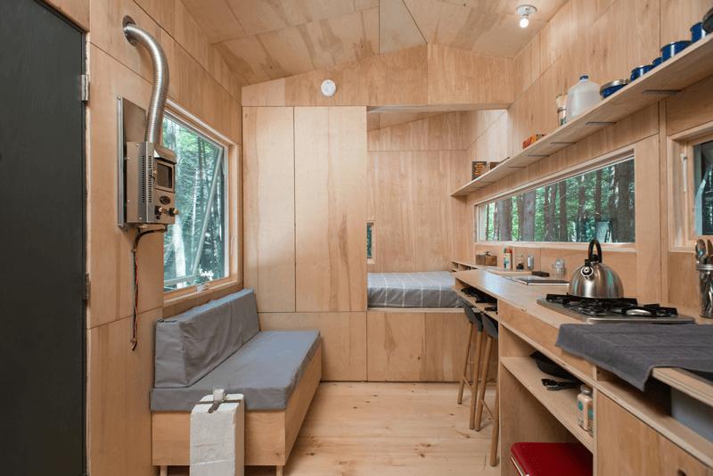 Často využívaným materiálom je aj borovicová a brezovú preglejka. Všetky domčeky majú rovnaké elektrické a vykurovacie systémy. V každom modeli nájdete umývadlo, WC, sprchu s teplou vodou, sporák, aj chladničku. Napriek tomu, že všetky mobilné domčeky sú dlhé a úzke (podobne ako karavan), líšia sa pôdorysom a výškou od vozovky.