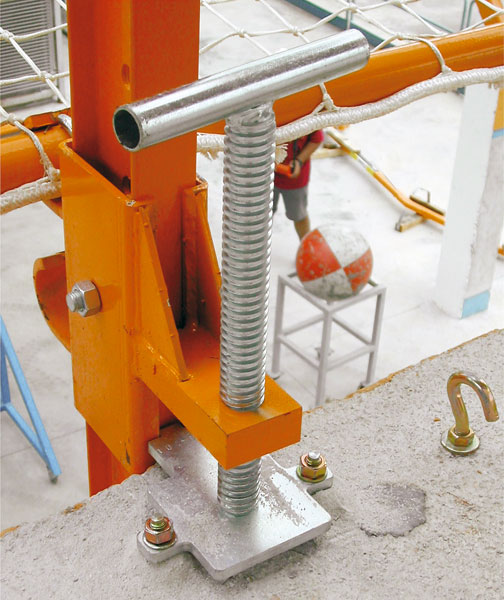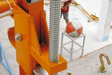 - pomocou nastaviteľnej čeľuste na uchytenie stĺpika z čelnej strany betónovej konštrukcie. Vďaka rozsahu nastavenia čeľuste do 0,8 m možno použiť tento spôsob aj v prípade ŽB dosky s nosníkom na okraji.