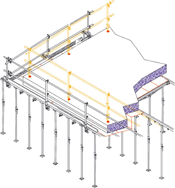 | Umiestnenie vnútorného zábradlia na ochranu okraja konštrukcie pred začatím oddebňovacích prác. | |