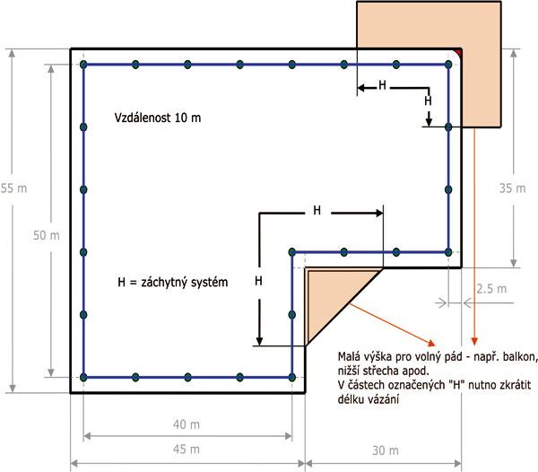 • určenie nesprávnej vzdialenosť k najvzdialenejšiemu miestu predpokladaného pohybu osôb, nevhodne zvolenej dĺžke lana na zachytenie a veľkej výške voľného pádu (maximálne by mala byť 2,0 m),
