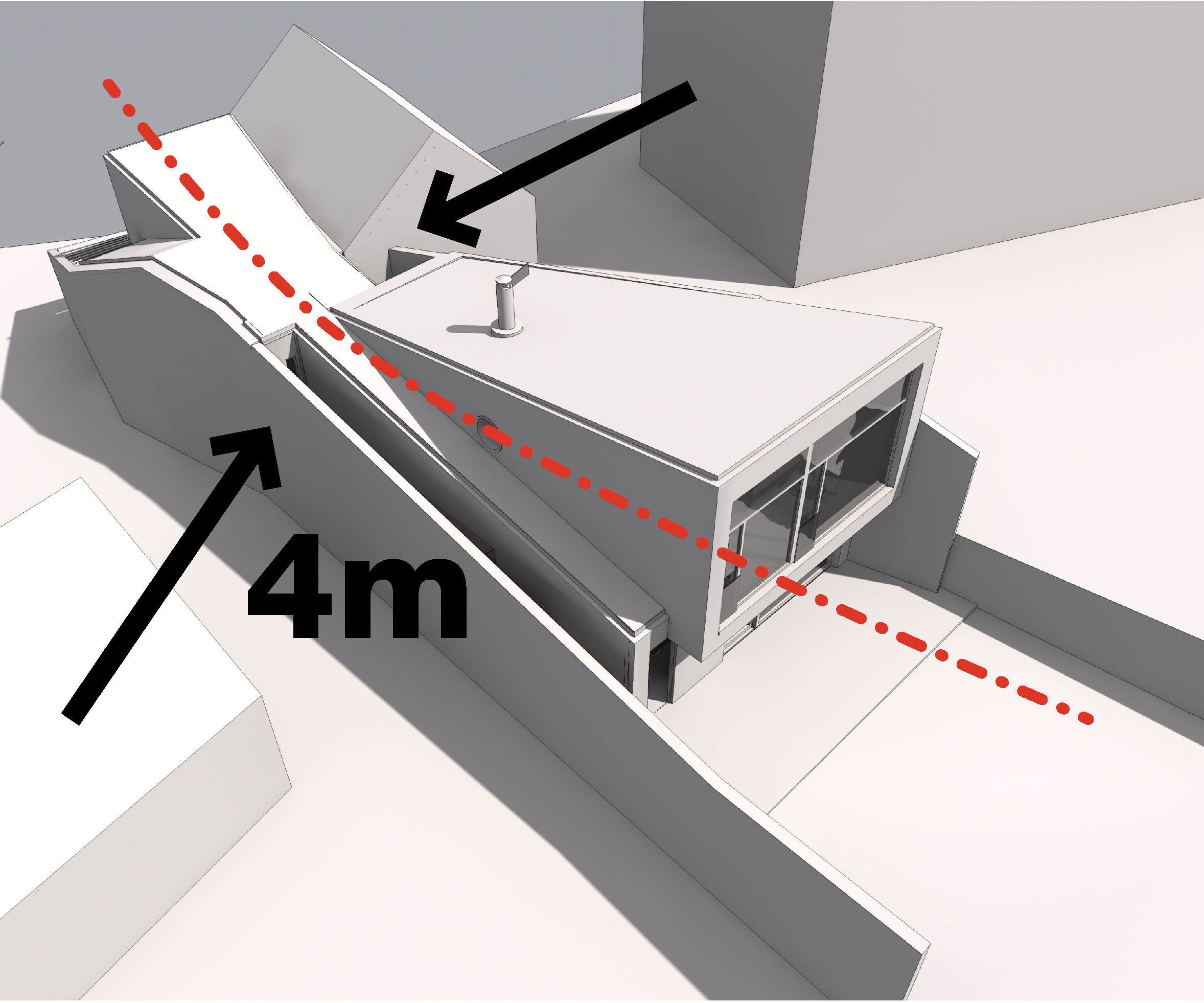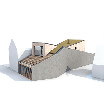 Špecifický tvar domu zodpovedá tvaru pozemku. Zámerom bolo premietnuť pôdorysnú zložitosť aj do tretieho rozmeru, a tak vznikla hmota, ktorá v podstate odráža pohľad na skaly Prokopského údolia a splýva s tvarom striech Starých Butovic.