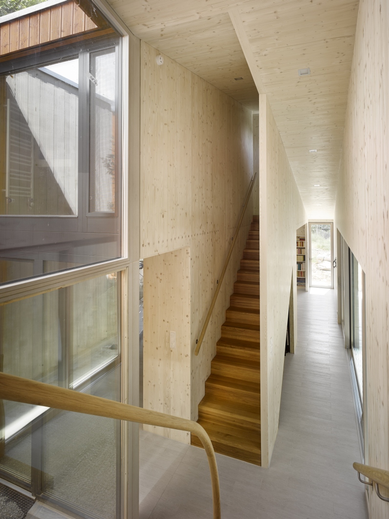 Predpokladám, že veľa ľudí by na túto otázku odpovedalo: „v čase výstavby“. Ak však chcete postaviť kompletne pohľadovú drevostavbu v takomto tvare, mesiace, ktoré ušetríte na stavbe, musíte venovať projektovej príprave. Preto pre nás nebola otázka času rozhodujúca. Ako architekti radi pracujeme s prírodnými a obnoviteľnými materiálmi. Máme za sebou stavbu domu z opuky, návrhy kamenných domov i stavieb z dreva či nepálenej utlačenej hliny. Ale práve pri práci s drevom sme cítili „brzdu“ v podobe zložitého použitia tohto konštrukčného materiálu na povrchu stavieb. Túto brzdu odstránili až CLT panely. Umožnili nám pracovať s drevom v plnej kráse. S drevom, ktorého sa môžete dotýkať, ktorého vôňu v dome cítiť. Rozpisovať sa o výhodách dreva je myslím zbytočné a všetko ostatné je už druhoradé.