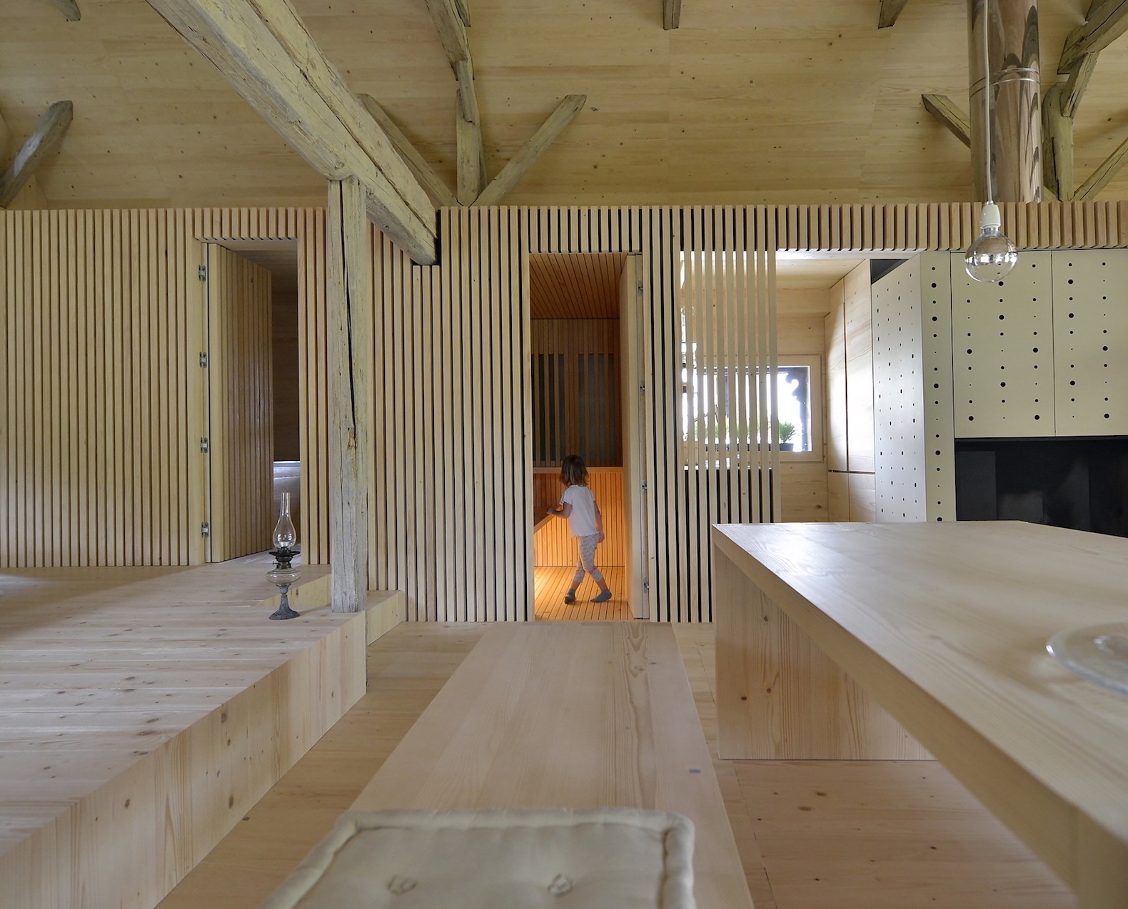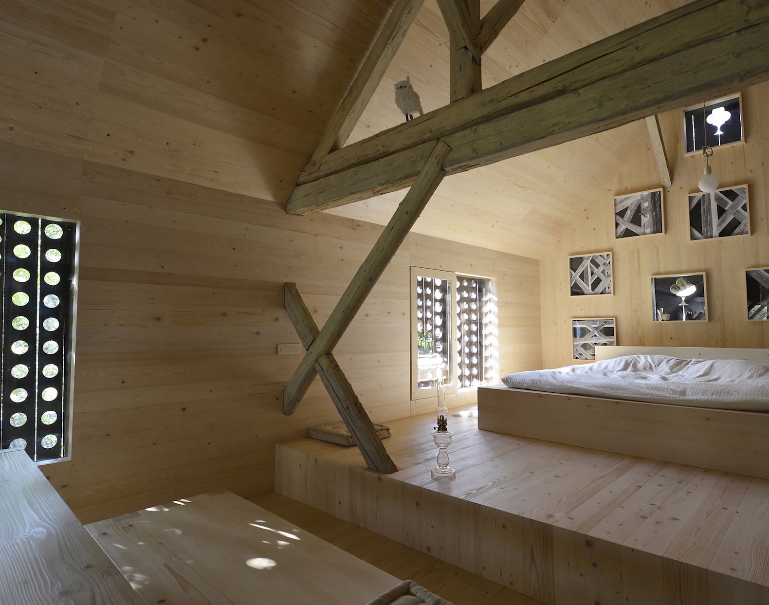 Tradičná stodola v slovinskej dedinke Bohinjska Bistrica sa stala terčom architektonického štúdia OFIS, ktorého architekti zmenili interiér na priestranné obydlie. Zatiaľ čo vonkajší tmavý plášť stodoly ostal nedotknutý, vnútorné priestory boli kontrastne obalené do svetlého smrekového dreva. Rekonštrukciu realizovali s ohľadom na zachovanie pôvodnej architektúry. Stodola tak naďalej zapadá do okolitej dedinskej zástavby.