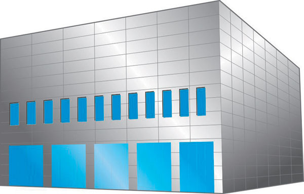 Na budovy môžu byť osadené aj veľkorozmerové kazety, ktorými sa zvyšuje originalita a estetická hodnota fasády alebo celej budovy.